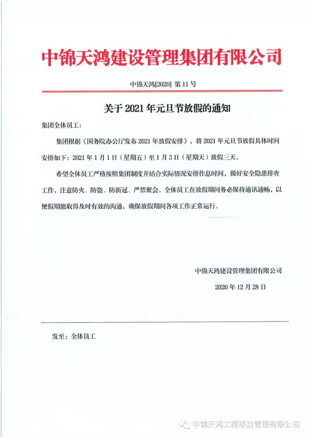 注意 | 集團公司關(guān)于2021年春節(jié)放假的通知